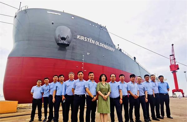 2020年8月6日,公司為德國船東Oldendorff建造的82K散貨輪 “KIRSTEN OLDENDORFF”(船體號(hào):HT82-242)成功簽字交船。
