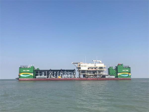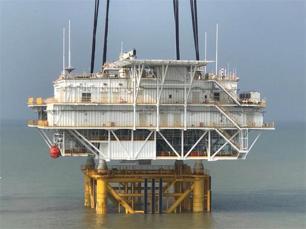 海洋水建成功安裝龍?jiān)瓷潢?yáng)H2海上升壓站
