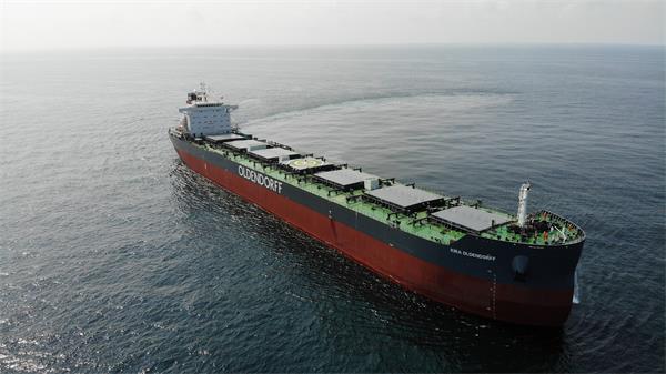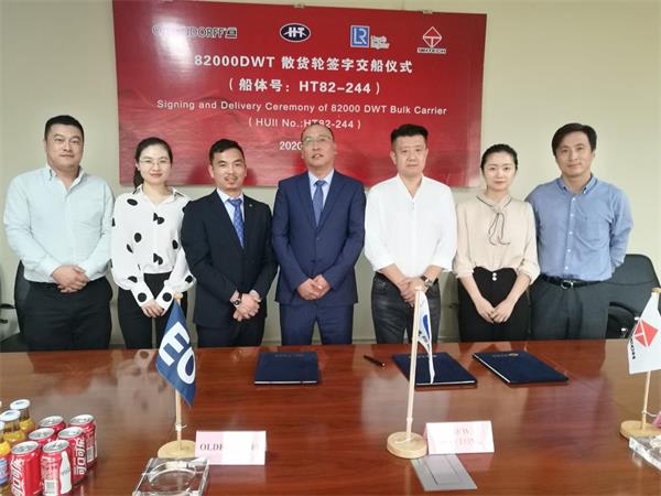 2020年9月21日,我司為德國(guó)船東Oldendorff建造的系列船中最后一條82K散貨輪 “KIRA OLDENDORFF”(船體號(hào):HT82-244)成功簽字交船。