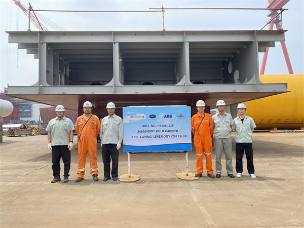 2021年6月30日,韓通為OLDENDORFF船東建造的208000噸散貨船(船體號:HT208-229)于10點18分順利上臺。該船入美國船級社。
