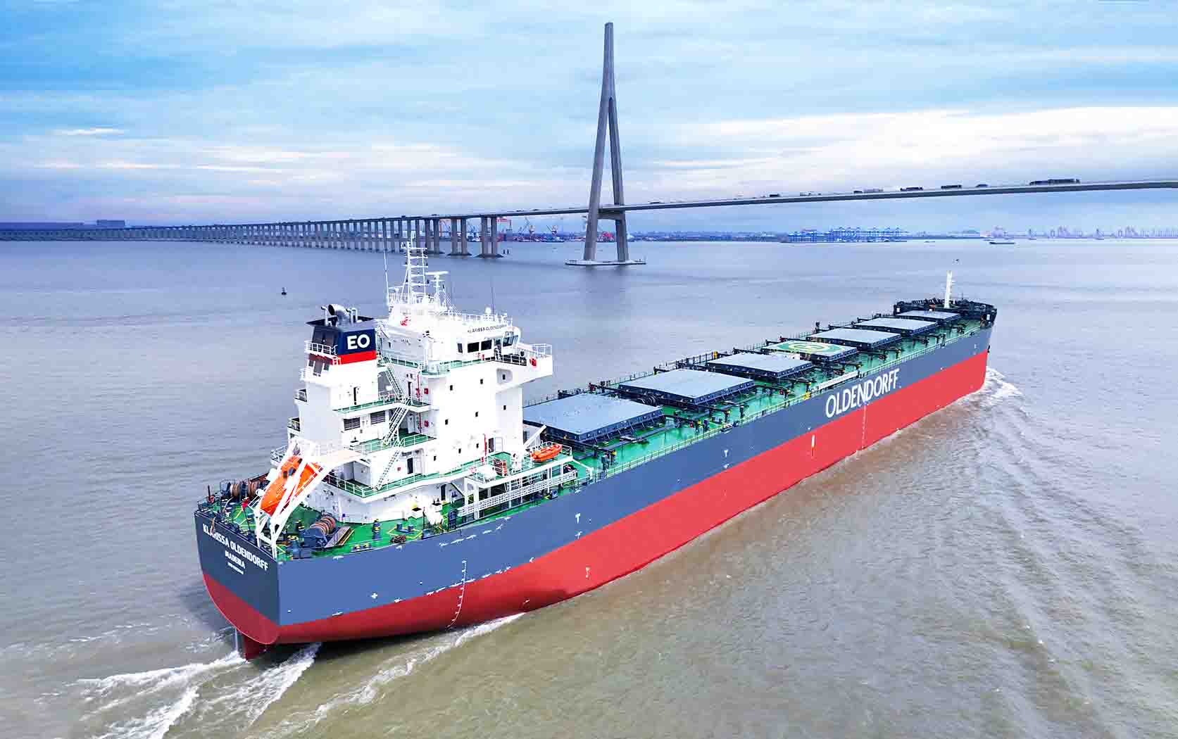 2023年10月20日,韓通為德國OLDENDORFF船東建造的82000噸散貨輪 “KLARISSA OLDENDORFF”(船體號:HT82-265)順利簽字交付,HT82-265是系列船中的第8艘,也是韓通交付給OLDENDORFF的第27艘,屬于目前航運市場主流的散貨船船型,入LR船級社。