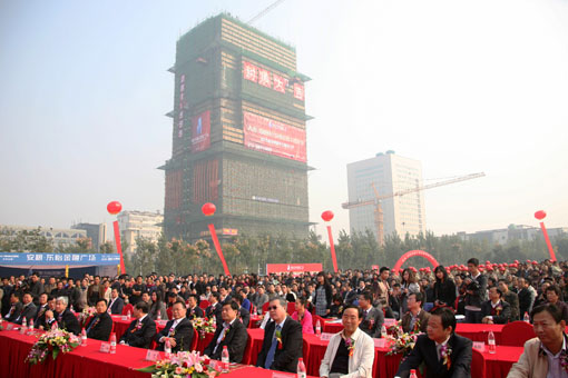 11月4日上午,由安徽安糧地產(chǎn)有限公司投資開發(fā)的安糧·東怡金融廣場A座招商銀行安徽總部大樓封頂儀式,暨3D多媒體銷售中心開放盛典活動在杏花公園隆重舉行。安徽省國資委副主任楚建平、安徽省銀監(jiān)局副局長張經(jīng)貴、安徽國貿集團董事長范陽、安徽國貿集團總經(jīng)理包祥華、合肥市廬陽區(qū)區(qū)委書記韋弋、廬陽區(qū)吳勁區(qū)長、招商銀行合肥分行行長孟凡安、安糧省糧油食品進出口集團公司董事長等領導參加了儀式。本次活動還邀請了安糧集團、安糧控股、合肥市、區(qū)政府機關以及銀行、媒體等單位的來賓出席。多家新聞媒體進行了現(xiàn)場直播和報道。