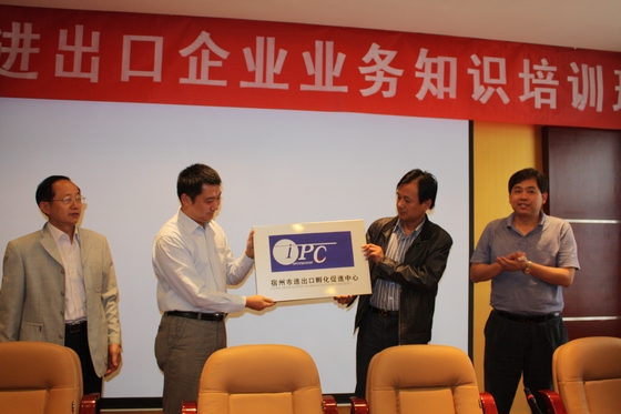 下午2:30,“宿州市進出口孵化促進中心授牌儀式”在該市華夏大酒店隆重舉行。省進出口孵化促進中心陳征主任、省進出口商會馬錦運秘書長、宿州市商務(wù)局王建明副局長等有關(guān)領(lǐng)導(dǎo)參加了授牌儀式。朱亮董事長在會上做了發(fā)言,武義海部長對宿州市40多家重點進出口孵化企業(yè)進行了《外貿(mào)業(yè)務(wù)實戰(zhàn)演練》的業(yè)務(wù)培訓(xùn)。