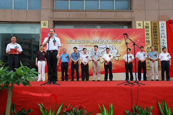 2012年8月8日上午,由公司參股的安徽鹽業(yè)小額貸款有限公司在安徽鹽業(yè)大廈舉行開業(yè)慶典。公司副總裁方宗友、財(cái)務(wù)副總監(jiān)張來(lái)往應(yīng)邀出席慶典儀式。