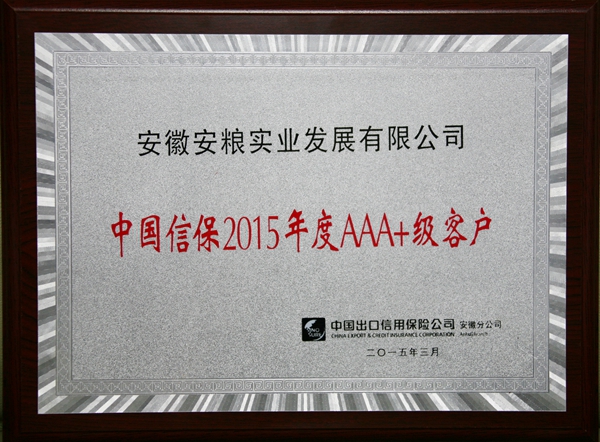 安糧實(shí)業(yè)成為中國(guó)出口信用保險(xiǎn)公司在安徽地區(qū)近900家企業(yè)客戶中第六家獲此殊榮的企業(yè)?!爸袊?guó)出口信用保險(xiǎn)公司2015年度AAA+級(jí)客戶”是中國(guó)出口信用保險(xiǎn)總公司授予企業(yè)客戶的最高級(jí)別評(píng)價(jià),對(duì)于獲得AAA+級(jí)評(píng)價(jià)的單位,中信保公司將特別開(kāi)通綠色通道,給予限額上浮、優(yōu)先賠付、審核程序簡(jiǎn)化、承保業(yè)務(wù)范圍擴(kuò)大等系列鼓勵(lì)政策。