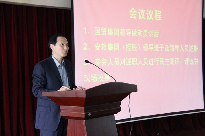 根據(jù)國貿(mào)集團黨委的統(tǒng)一部署和要求,4月8日安糧集團(控股)2015年度領(lǐng)導(dǎo)班子及領(lǐng)導(dǎo)人員述職述廉述責(zé)大會在盛安廣場5樓隆重召開。國貿(mào)集團黨委副書記、副總經(jīng)理李明輝攜相關(guān)部室負責(zé)人和工作人員出席了會議,安糧集團職代會代表、安糧集團及控股本部中層以上管理人員、各基層黨組織委員及各板塊公司高管等近百名代表參加了本次會議。會議由集團黨委副書記孫毅主持。