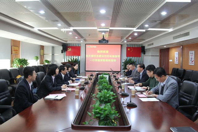 11月23日上午,光大銀行合肥分行行長楊劍平一行來公司調(diào)研指導(dǎo),安糧集團(tuán)黨委書記、董事長,安糧控股董事長、總裁曹訓(xùn)立在公司22樓會議室接待了來賓并舉行座談。安糧集團(tuán)總裁方宗友、安糧控股財(cái)務(wù)總監(jiān)張來往等參加座談。