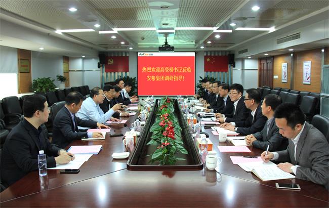在隨后進行的調(diào)研座談會上,曹訓(xùn)立董事長向高登榜書記匯報了安糧的歷史沿革、組織架構(gòu)、經(jīng)營和黨建工作等具體情況,并就企業(yè)發(fā)展等方面提出了建議及請求。方宗友總裁就穩(wěn)增長、增營收等具體工作做了簡要匯報。