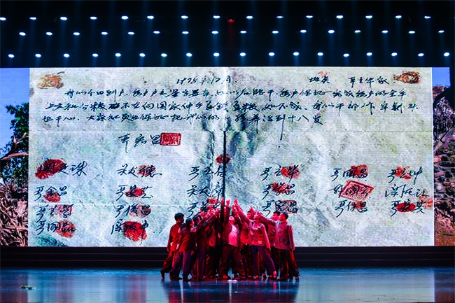 《我們都是追夢(mèng)人》用昂揚(yáng)向上的歌曲和活力四射的舞蹈描繪了奮戰(zhàn)在新時(shí)代的國貿(mào)追夢(mèng)人堅(jiān)守崗位、努力拼搏,共同建設(shè)“幸福國貿(mào)”的動(dòng)人畫卷,也表達(dá)了國貿(mào)人熱愛祖國、祝福祖國的深切情義;《新時(shí)代》則以小崗村大包干為背景,反映安徽鄉(xiāng)村百姓的生活變化,折射出改革開放40年中華大地的滄桑巨變。