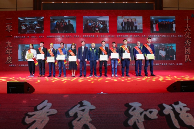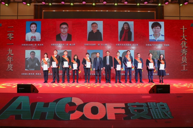 為總結(jié)經(jīng)驗、鼓勵先進,集團對2019年度涌現(xiàn)出的先進集體和優(yōu)秀個人進行了表彰,安糧集團黨委副書記、紀(jì)委書記孫毅宣讀了《關(guān)于表彰2019年度先進集體和個人的決定》。集團領(lǐng)導(dǎo)為合肥建工、安糧國際、安糧實業(yè)三家“先進單位”以及“十大優(yōu)秀團隊”、“十大優(yōu)秀經(jīng)理”、“十大優(yōu)秀員工”進行頒獎。合肥建工陳龍、安糧控股陸召輝、安糧國際張偉分別作為獲獎代表上臺發(fā)言。