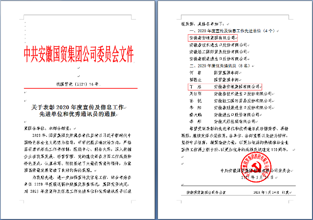 安糧集團(tuán)榮獲國(guó)貿(mào)集團(tuán)2020年度宣傳及信息工作表彰
