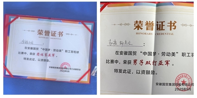 在5月27日落幕的 “中國夢?勞動美” 安徽國貿(mào)職工羽毛球賽中,安糧集團代表隊團結(jié)協(xié)作、奮力拼搏,奪得團體亞軍。來自安糧新鏈的楊杰文與安糧期貨的趙濤在單項賽中斬獲男子雙打亞軍,展現(xiàn)出安糧員工昂揚向上的精神風貌。