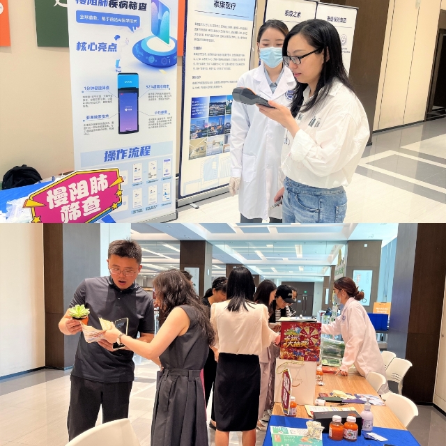 活動(dòng)現(xiàn)場(chǎng)開(kāi)設(shè)“慢阻肺專項(xiàng)篩查通道”,通過(guò)A1技術(shù)開(kāi)展肺部健康檢測(cè),幫助員工了解呼吸道健康狀況,實(shí)現(xiàn)肺部疾病的早發(fā)現(xiàn)、早干預(yù)。工作人員現(xiàn)場(chǎng)詳解慢阻肺的預(yù)防要點(diǎn)與日常護(hù)理知識(shí),針對(duì)員工提出的健康問(wèn)題進(jìn)行一對(duì)一解答,切實(shí)提升員工對(duì)慢性呼吸道疾病的重視程度。