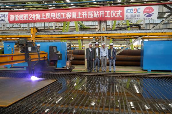 浙能國電投嵊泗2#海上升壓站開工儀式在業(yè)主單位和各參建單位代表共同聯(lián)手按下點(diǎn)火按鈕并成功開始切割后圓滿結(jié)束。