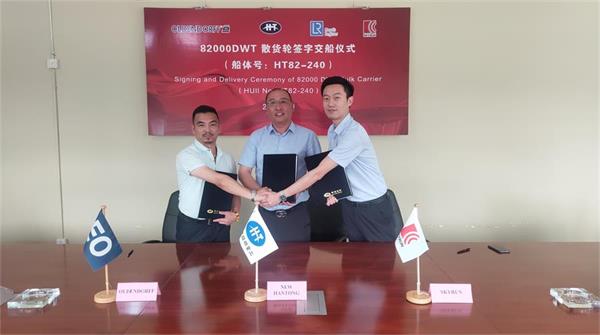 2020年7月1日,公司為德國(guó)船東Oldendorff建造的82K散貨輪 “SOUND YOUNG”(船體號(hào):HT82-240)成功簽字交船。