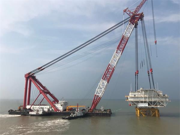 海洋水建成功安裝龍?jiān)瓷潢?yáng)H2海上升壓站