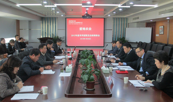 會議聽取了愛地農(nóng)業(yè)各部室負責人述職報告以及2013年部室工作計劃等匯報,員工分別作了2012年工作小結(jié),并進行了現(xiàn)場考評。