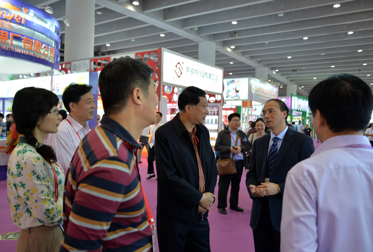 省商務(wù)廳王曉陽副巡視員(中)巡視公司展位