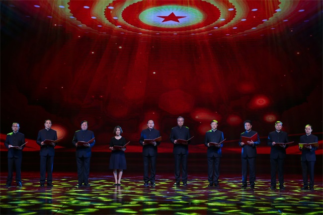 此外,本次演出國貿(mào)集團(tuán)黨委書記、董事長范陽還率國貿(mào)領(lǐng)導(dǎo)班子與安糧集團(tuán)黨委書記、董事長曹訓(xùn)立等各主要成員企業(yè)負(fù)責(zé)人,共同為大家奉獻(xiàn)了一首情真意切的配樂詩朗誦《國貿(mào)禮贊》。