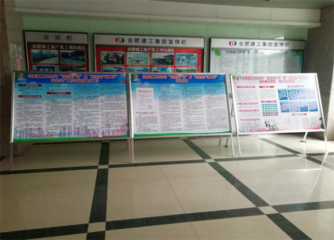 為切實(shí)增強(qiáng)全員安全生產(chǎn)意識和提升全員安全素質(zhì),合肥建工制作了“安全生產(chǎn)月”暨“安全生產(chǎn)建工行”宣傳展板在本部一樓大廳進(jìn)行宣傳展示,各項(xiàng)目部在工程顯著位置張貼、懸掛“安全生產(chǎn)月”宣傳標(biāo)語、橫幅、掛圖等,同時利用 LED 屏宣傳,在LED電子顯示屏上持續(xù)滾動播放安全公益廣告等,積極營造關(guān)心安全生產(chǎn)、參與安全發(fā)展的濃厚輿論氛圍。
