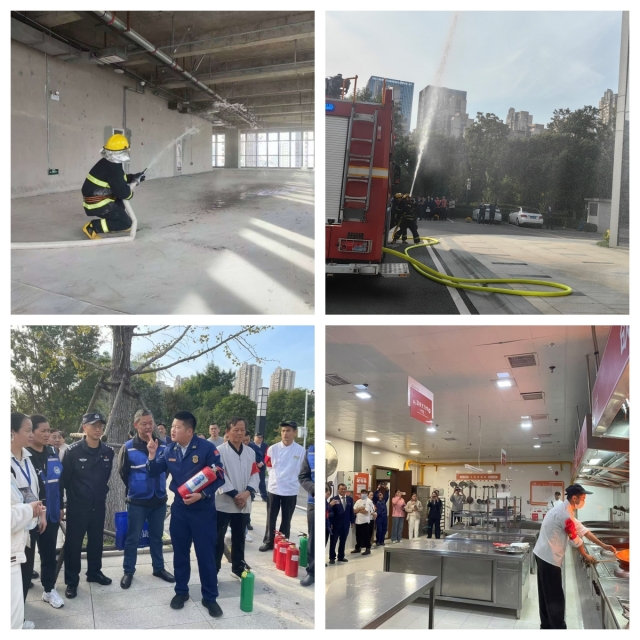 下午3時(shí),消防應(yīng)急演練總指揮下達(dá)演練開(kāi)始指令。工作人員在預(yù)定地點(diǎn)放置煙霧彈,觸發(fā)火災(zāi)報(bào)警,模擬火情發(fā)生場(chǎng)景。安糧中心辦公樓火警警報(bào)鳴響,全體職工迅速進(jìn)入緊急疏散狀態(tài),各樓層消防和應(yīng)急救援隊(duì)員迅速反應(yīng),有序引導(dǎo)職工從安全出口撤離到避難層。同時(shí),消防隊(duì)員全副武裝,封控火場(chǎng)、撲滅火災(zāi)。在火警解除后,救援大隊(duì)隊(duì)員開(kāi)展滅火器使用教學(xué)、油鍋起火的預(yù)防和撲救等內(nèi)容,參與演習(xí)的物業(yè)、餐飲安全員們分別用不同的方式進(jìn)行滅火實(shí)操,切身感受了正解與錯(cuò)誤滅火的后果。